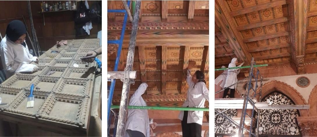 واشار الدكتور محمد عبد العاطي الى أنه تم الاستعانة بفريق كبير من نخبة أساتذة المتخصصين في مجال الترميم من جامعات الآثار المصرية وتحت اشراف مركز الدراسات المعمارية بجامعة القاهرة وقطاع المشروعات بوزارة السياحة والآثار ومركز بحوث وصيانة الآثار بكلية الآثار جامعة الفيوم وذلك لضمان جودة نتائج تنفيذ الترميم المطلوب، حيث أن عملية الترميم الدقيق بالمبنى هي عملية متخصصة جدا تحتاج الى تضافر الجهود من خبراء الترميم والعمارة والكيميائيين ومؤرخي الفن والفيزيائيين.