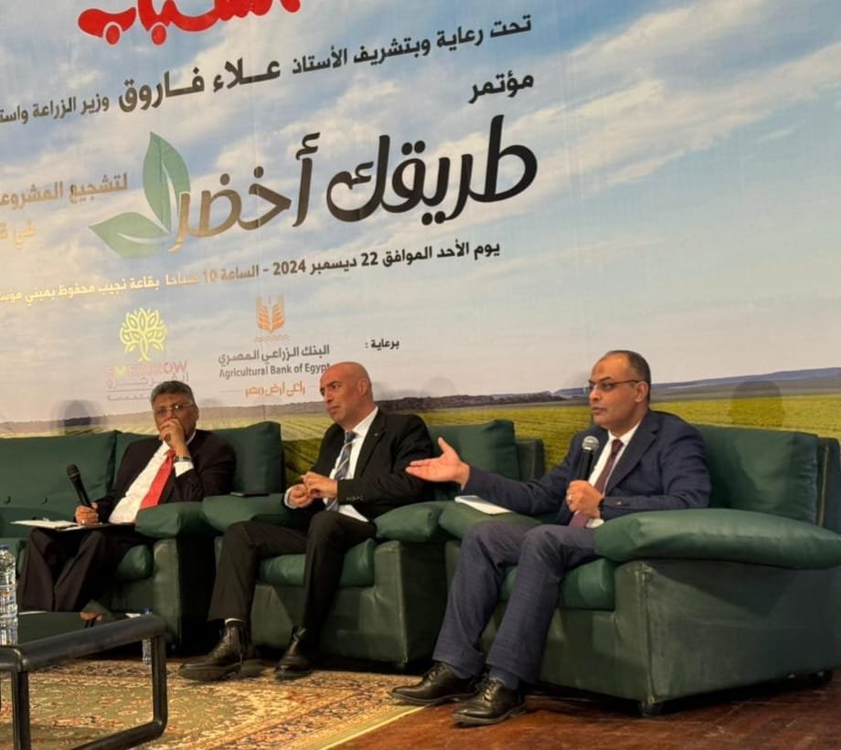 شارك البنك الزراعي المصري كراع رسمي لمؤتمر” طريقك أخضر” لتشجيع المشروعات الصغيرة في القطاع الزراعي، والذي نظمته مجلة الشباب تحت رعاية وحضور معالي السيد علاء فاروق، وزير الزراعة واستصلاح الأراضي، والأستاذ سامي عبد الصادق، القائم بأعمال رئيس مجلس إدارة البنك الزراعي المصري، ويستهدف المؤتمر بحث سبل دعم المشروعات الصغيرة ومتناهية الصغر وتشجيع الشباب على إطلاق مشروعاتهم للمساهمة في تحقيق التنمية الزراعية وتوفير فرص العمل.