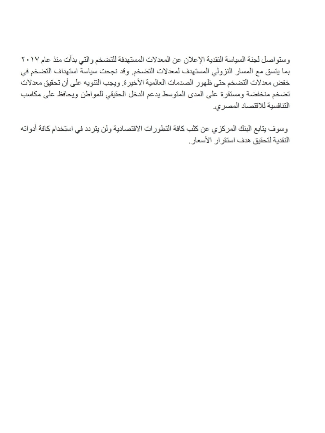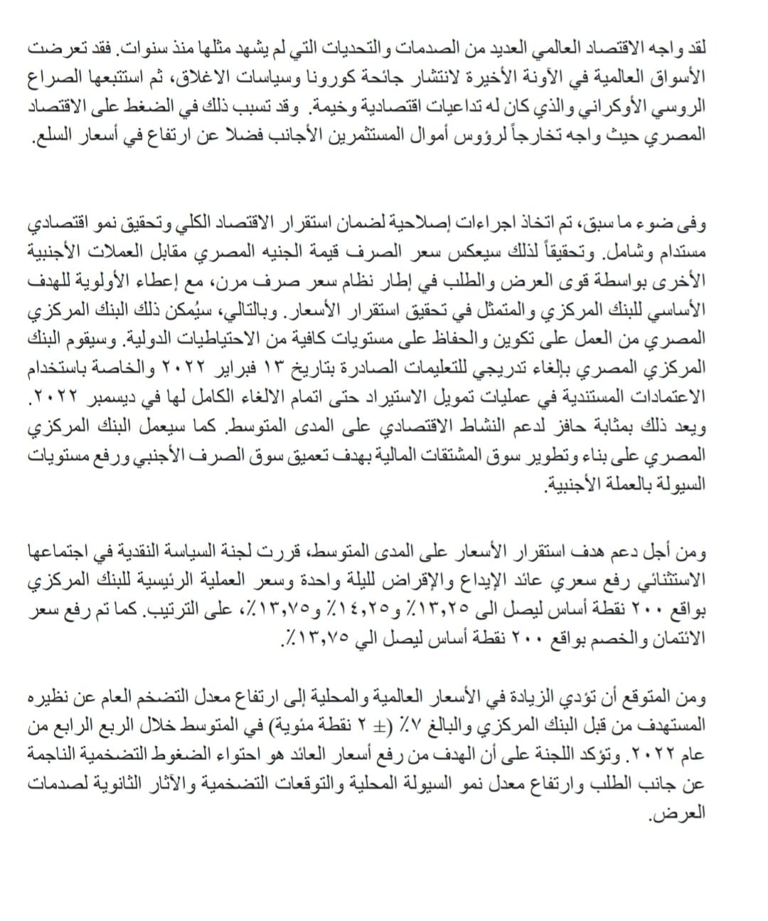رفع البنك المركزي المصري سعر عائد الإيداع والإقراض لليلة واحدة وسعر العملية الرئيسية للبنك المركزى بواقع 200 نقطة أساس ليصل إلى 13.25% و 14.25% و 13.75% على الترتيب.