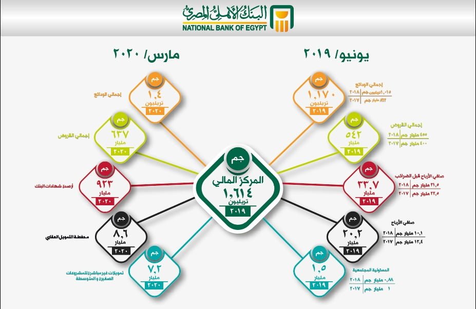 تستمر مؤشرات التطور فى أداء البنك الأهلى المصرى فى تحقيق معدلات نمو غير مسبوقة تعكسها أرقام وإنجازات البنك المحققة بنهاية العام المالى 2018 / 2019 وكذا ما أظهرته نتائج أعماله فى التسعة شهور الأخيرة المنتهية فى مارس 2020، حيث أظهرت نتائج أعمال البنك الأهلى المصرى تحقيقه صافى أرباح بعد الضرائب قدرها 20.2 مليار جنيه فى 30 يونيو 2019 وذلك مقارنة بـ 10.1 مليار جنيه فى يونيو 2018 محققا بذلك معدل نمو بلغ 100%.
