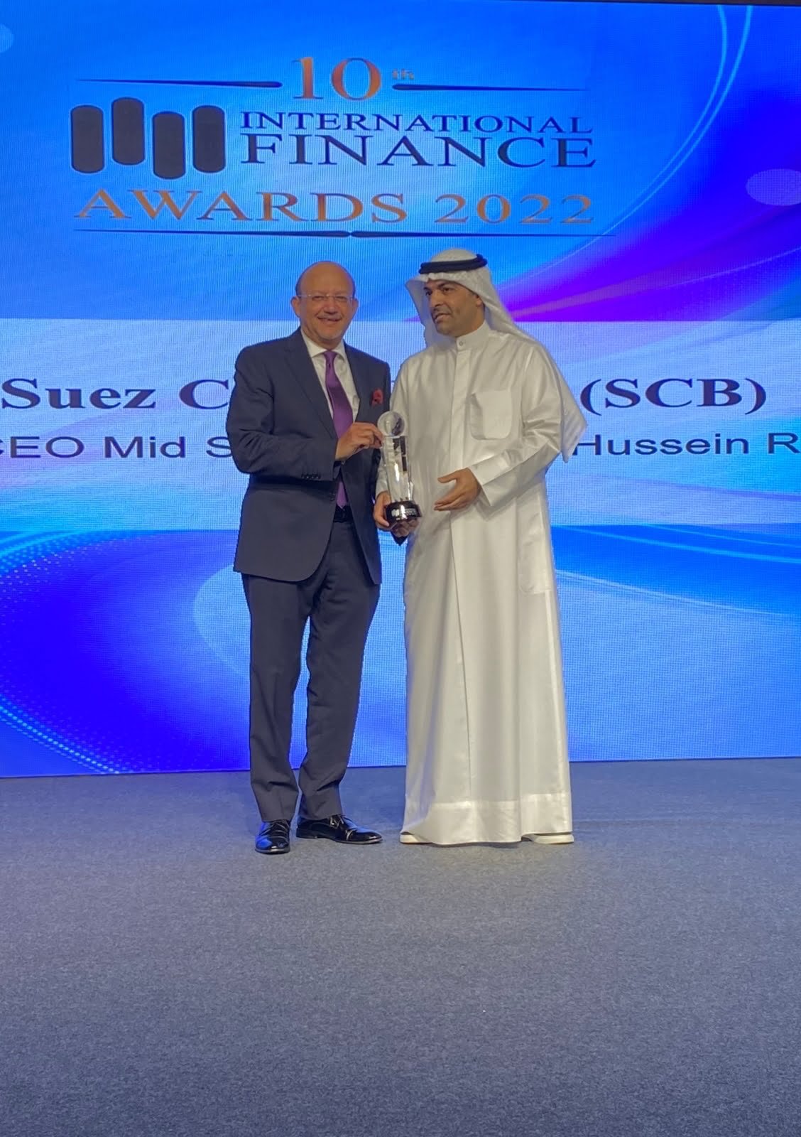 حصل حسين رفاعي رئيس مجلس الإدارة والعضو المنتدب لبنك قناة السويس، على جائزة أفضل رئيس تنفيذي لعام 2022، خلال الحفل الذى نظمته مجلة إنترناشونال فاينانس البريطانية (المتخصصة في الأسواق الناشئة)، ويتم تسليم الجائزة الى المسؤولين عن المؤسسات التي قدمت أعلى معايير التطوير والتميز.
