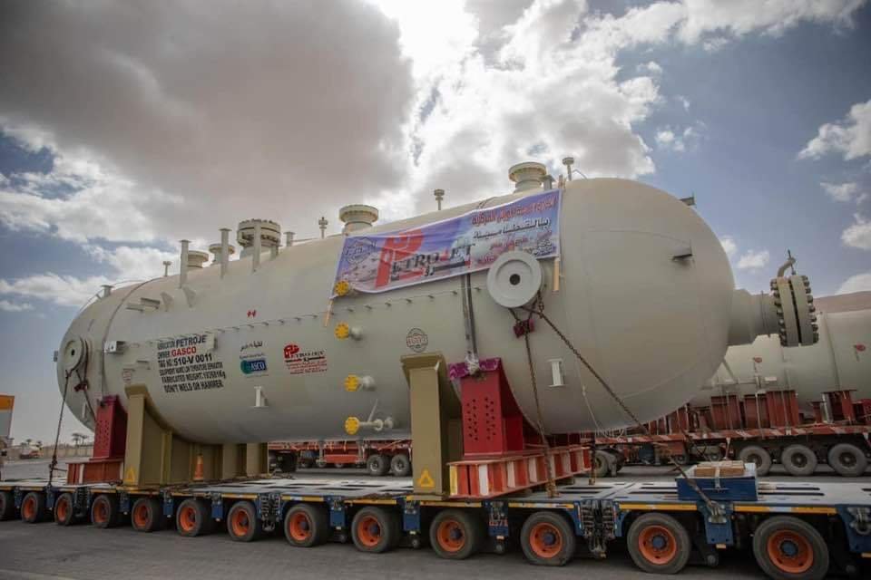 تم نقل أبراج الغاز وتحميلها ونقلها لميناء الأدبية براً على كاسحات الشركة الوطنية لخدمة النقل وأعالي البحار “نوسكو” وذلك تمهيدا لنقلها نقلها بحراً إلى ميناء الدخيلة ثم نقلها للصحراء الغربية براً للاستخدام لأغراض العمل بمجمع الغازات بالصحراء الغربية.