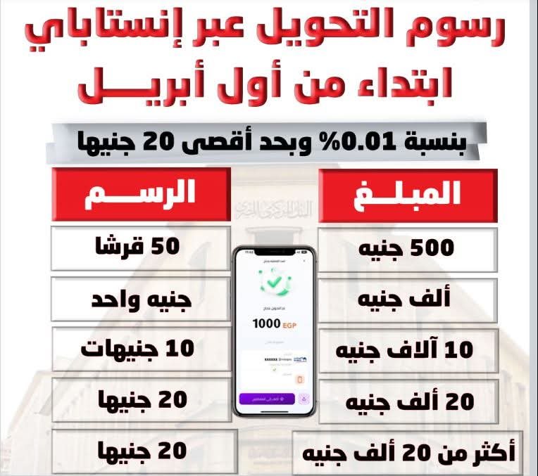 وحددت الشبكة الرسوم الجديدة للتحويل عبر تطبيق “إنستاباي” لتكون 0.1% من قيمة المعاملة، بحد أدنى 50 قرشًا وحد أقصى 20 جنيهًا مصريًا للمعاملة الواحدة. كما سيتيح التطبيق 10 عمليات استعلام عن الرصيد أو كشف الحساب المختصر مجانًا شهريًا لكل عميل، على أن يتم تطبيق رسوم قدرها 50 قرشًا على كل عملية استعلام إضافية.