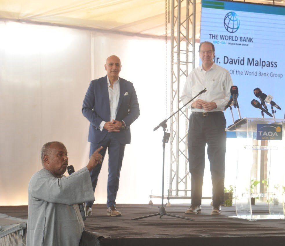 جاء ذلك خلال زيارة رئيس البنك الدولى لشركة طاقة للطاقة الشمسية فى أولى زياراته الخارجية، بمرافقة غادة والى وزيرة التضامن واللواء أحمد إبراهيم محافظ أسوان، والدكتورة صباح مشالى رئيس الشركة المصرية لنقل الكهرباء والدكتور محمد الخياط رئيس هيئة الطاقة المتجددة بالإنابة عن الدكتور محمد شاكر وزير الكهرباء والطاقة المتجددة، ووفد البنك الدولى رفيع المستوى المرافق لرئيس البنك، وذلك بموقع الشركة بمشروع الطاقة الشمسية بمنطقة بنبان بمحافظة أسوان، بتكلفة 1.35 مليار جنيه، وقد بدأ التشغيل الفعلى للمشروع فى فبراير الماضى، بطاقة إنتاجية 50 ميجا واط.