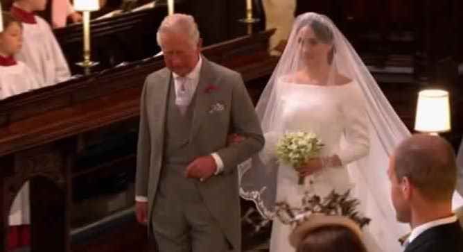 واصطحب الأمير تشارلز ولى عهد بريطانيا العروس فى ممر الكنيسة وقدمها إلى عريسها بدلا من والدها الذى لم يتمكن من حضور الحفل لأسباب صحية والذى شاهد الحفل بالكامل عبر التليفزيون من كاليفورنيا.