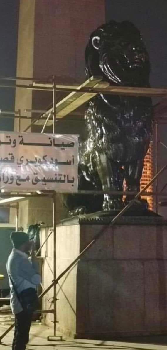 وقال وزير السياحة والآثار إن أعمال تنظيف تماثيل أسود قصر النيل اقتصرت على إزالة الأتربة والاتساخات الملتصقة وغازات التلوث الجوي فقط بإلإضافة إلى وضع طبقة عزل شفافة لحماية التماثيل من العوامل الجوية مشيرا إلي أن عملية تنظيف وصيانة تماثيل أسود كوبري قصر النيل لم يتم فيها استعمال ورنيش أو مواد ملمعة أدت إلى تغير لونها كما أُشيع.