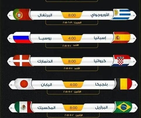 مباريات دور الـ 16 فى كأس العالم ومواعيدها