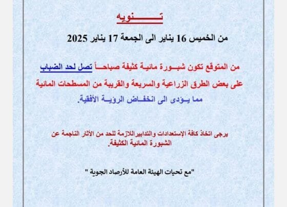 تحذير من ارتفاع الشبورة الخميس 16 يناير