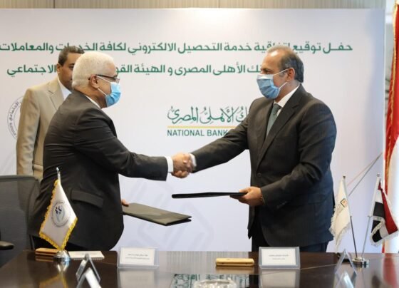البنك الأهلى المصرى يوقع اتفاقية خدمة التحصيل الإلكترونى مع الهيئة القومية للتأمين الاجتماعى