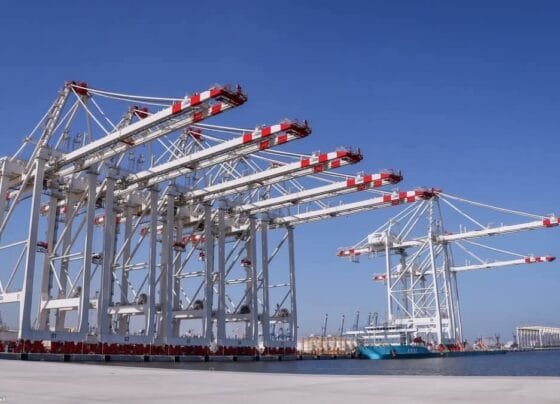 ميناء دمياط يستقبل دفعة جديدة من أوناش الرصيف العملاقة