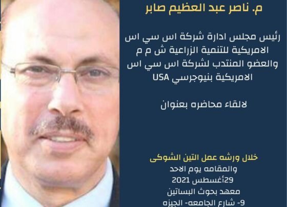 يستضيف قسم بحوث الفاكهة الاستوائية يوم الأحد القادم المهندس ناصر صابر رئيس مجلس إدارة شركة اس سي اس الأمريكية للتنمية…