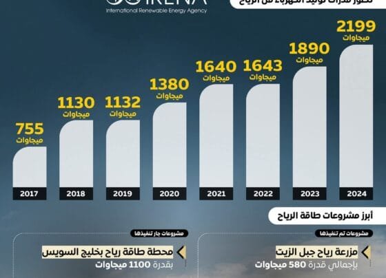 مصر تقود التحول في قطاع الطاقة المتجددة بالمنطقة، حيث تصدّرت الشرق الأوسط وشمال إفريقيا في قدرات توليد الكهرباء من الرياح…