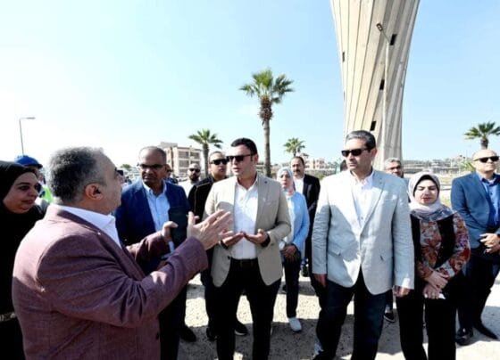 وزير الإسكان ومحافظ دمياط يتفقدان سير العمل بمحطة معالجة صرف صحى رأس البر